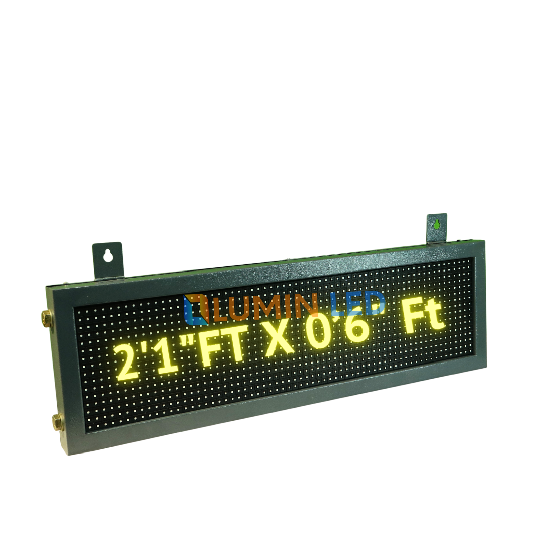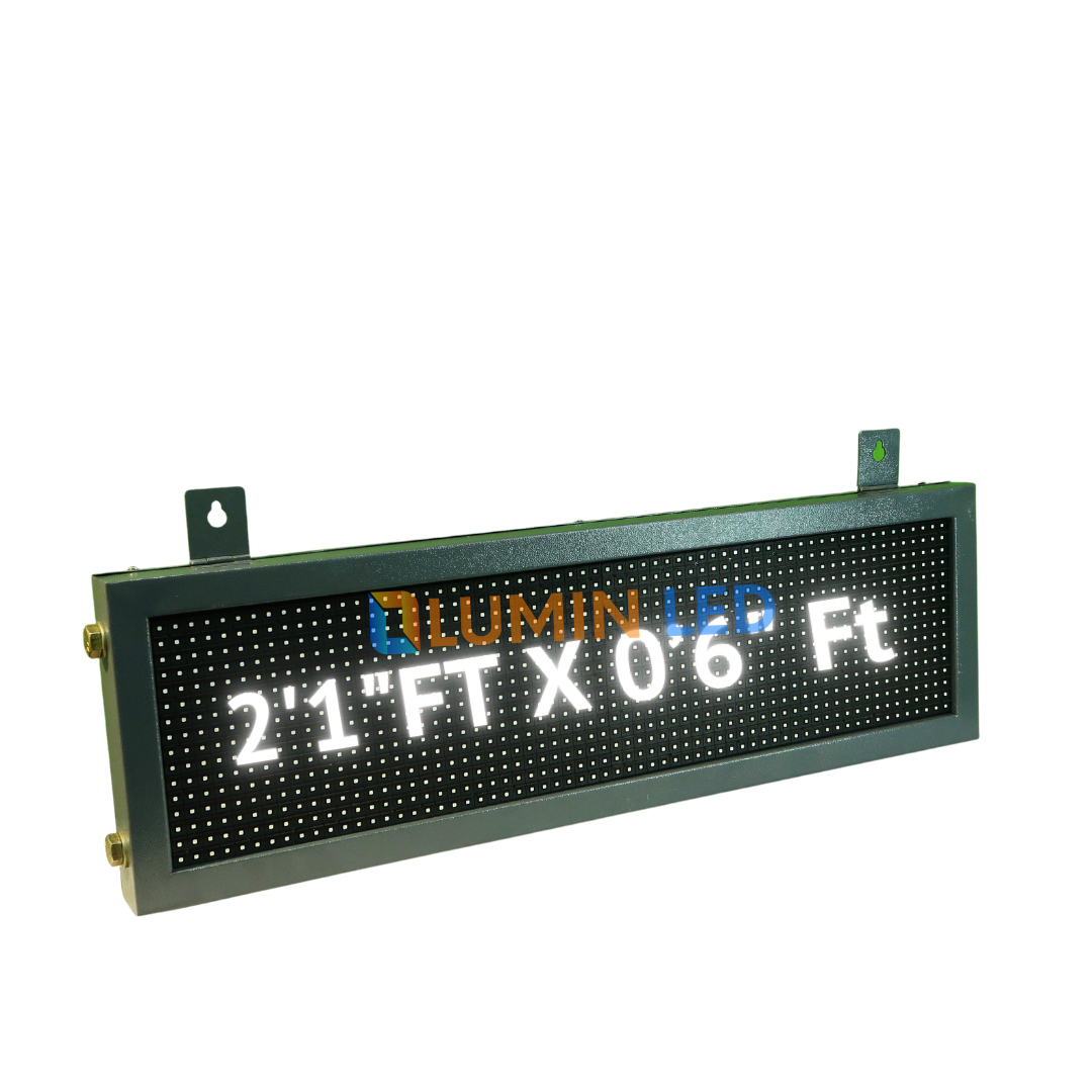 | LED Display Size: 2’1″ FT X 0’6″ FT (+ 1 Inch Steel Frame) |